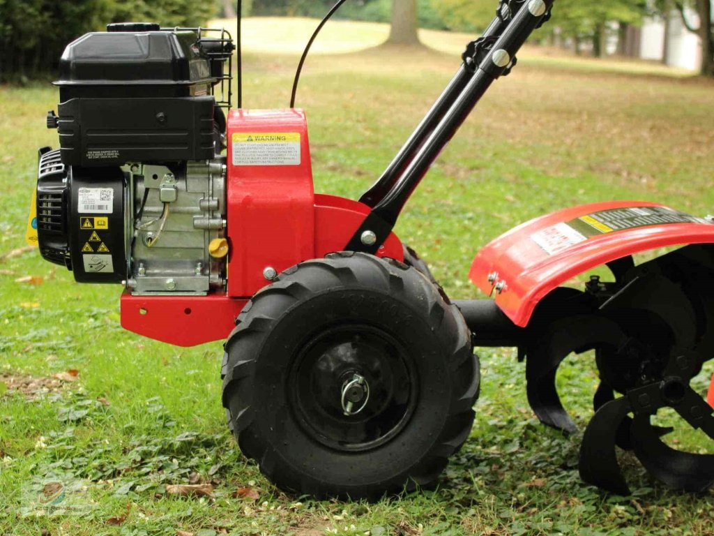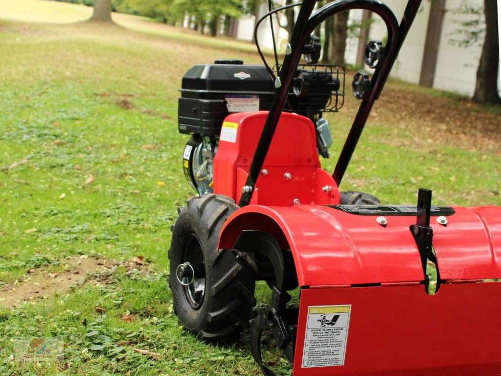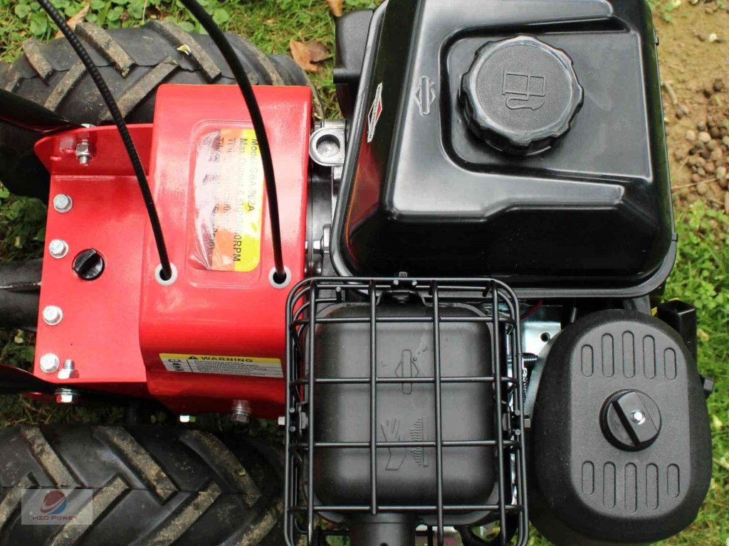 Ausgestattet ist die Bodenfräse mit einem starken Briggs&Stratton Benzinmotor (6,5 PS, XR950). Der von Briggs&Stratton eingerichtete Wartungs-/Reparaturservice in ausgewählten Partnerwerkstätten hilft unkompliziert, sollte es zu Problemen mit dem leistungsstarken Motor kommen.