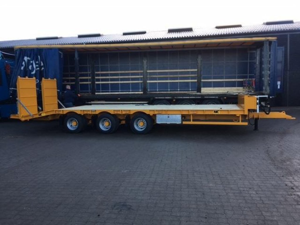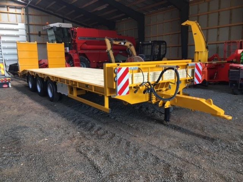 22 ton 3-akslet blokvogn m/hydrauliske ramper, affjedret træk, Hydrauliske eller luftbremser. Forbredningsdele til 3.1 mtr, samt afmærkningslamper og værktøjskasse og kurv til forbredningddele. Kan enten synes som traktorpåhængsvogn med last på ca. 22 ton eller som blokvogn