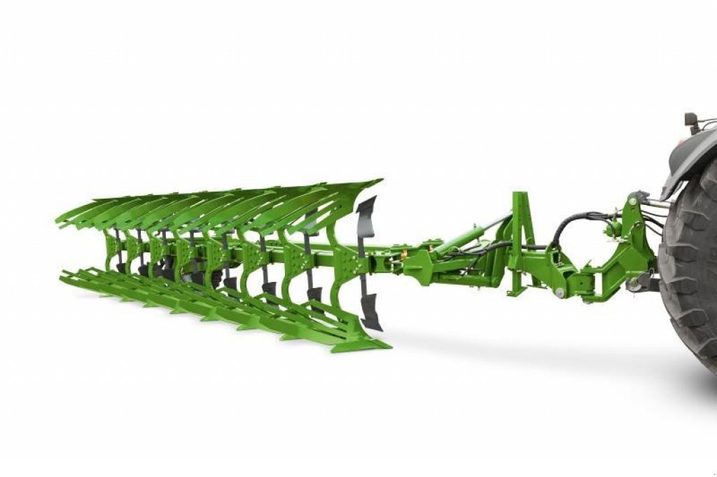 Полуприцепной оборотный плуг Amazone Hektor Новый модельный ряд полуприцепных оборотных плугов Hektor с количеством корпусов от 6 до 8 и механической регулировкой ширины захвата от 38 до 50 см. Разработанный для применения в сложных эксплуатационных условиях, а также отличающийся простым пользованием и настройкой.Большое опорно-транспортное колесо размером (500/45 – 22,5) обеспечивает оптимальное сцепление с почвой и точное ведение по глубине даже при тяжелых условиях. Чистик надежно расчищает колесо. Опорно- транспортное колесо расположено сбоку на раме, так что можно проводить обработку ближе к границе поля. Серийная функция гидропневматического демпфирования опорно-транспортного колеса обеспечивает максимальную безопасность и высочайший комфорт при транспортировке.Настройка плуга осуществляется в три шага: 1) Серийная гидравлическая настройка первой борозды быстро и непосредственно изменяет ширину захвата первого корпуса плуга и адаптирует ее к внутренней ширине колеи трактора. Это обеспечивает формирование чистых стыков борозды, что очень практично при переменных почвах и смене тракторов. 2) Настройка наклона плуга осуществляется без инструментов отдельно для правой и левой стороны. 3) У опорно-транспортного колеса проводится бесступенчатая настройка глубины обработки без инструментов.
