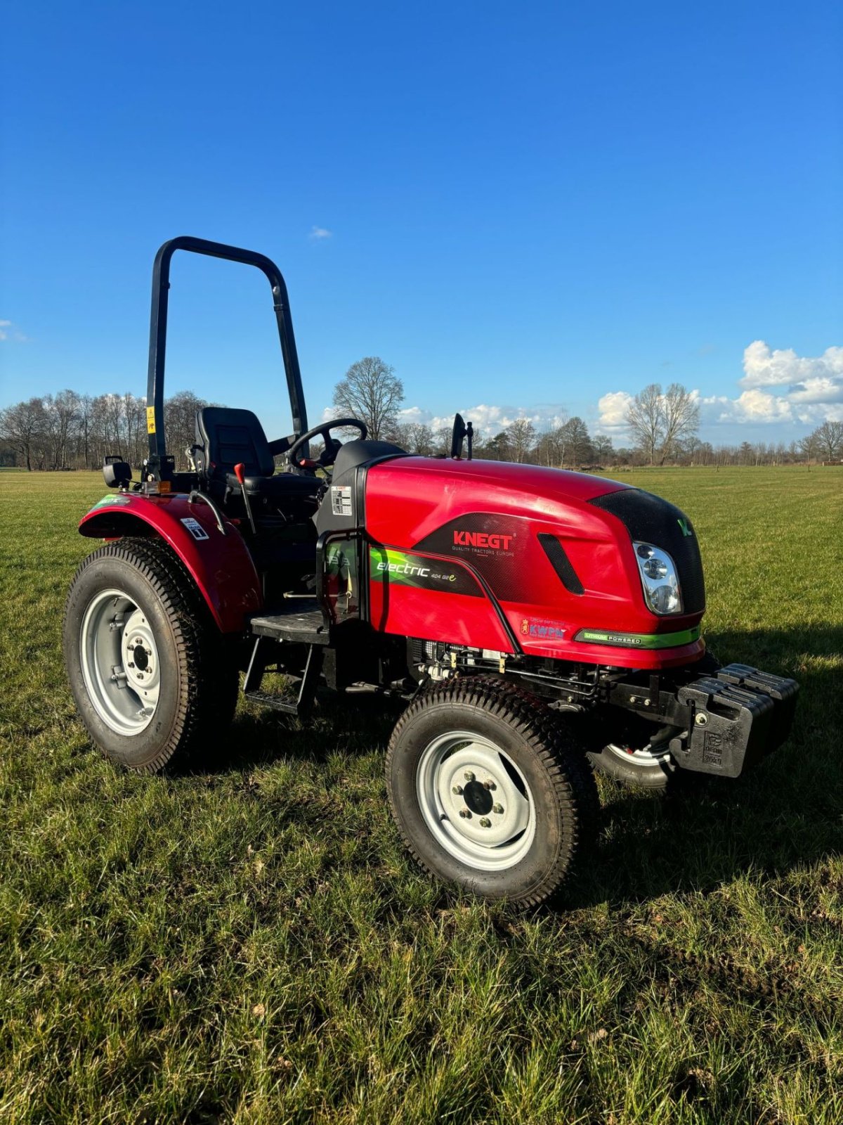 Nette Knegt DEMO elektrische trekker van 55 pk 4 WD met ca. 35 draaiuren op gazonbanden 7.50-16 en 12.4-24 met scharmuller snelverstel trekhaak en set frontgewichten.
