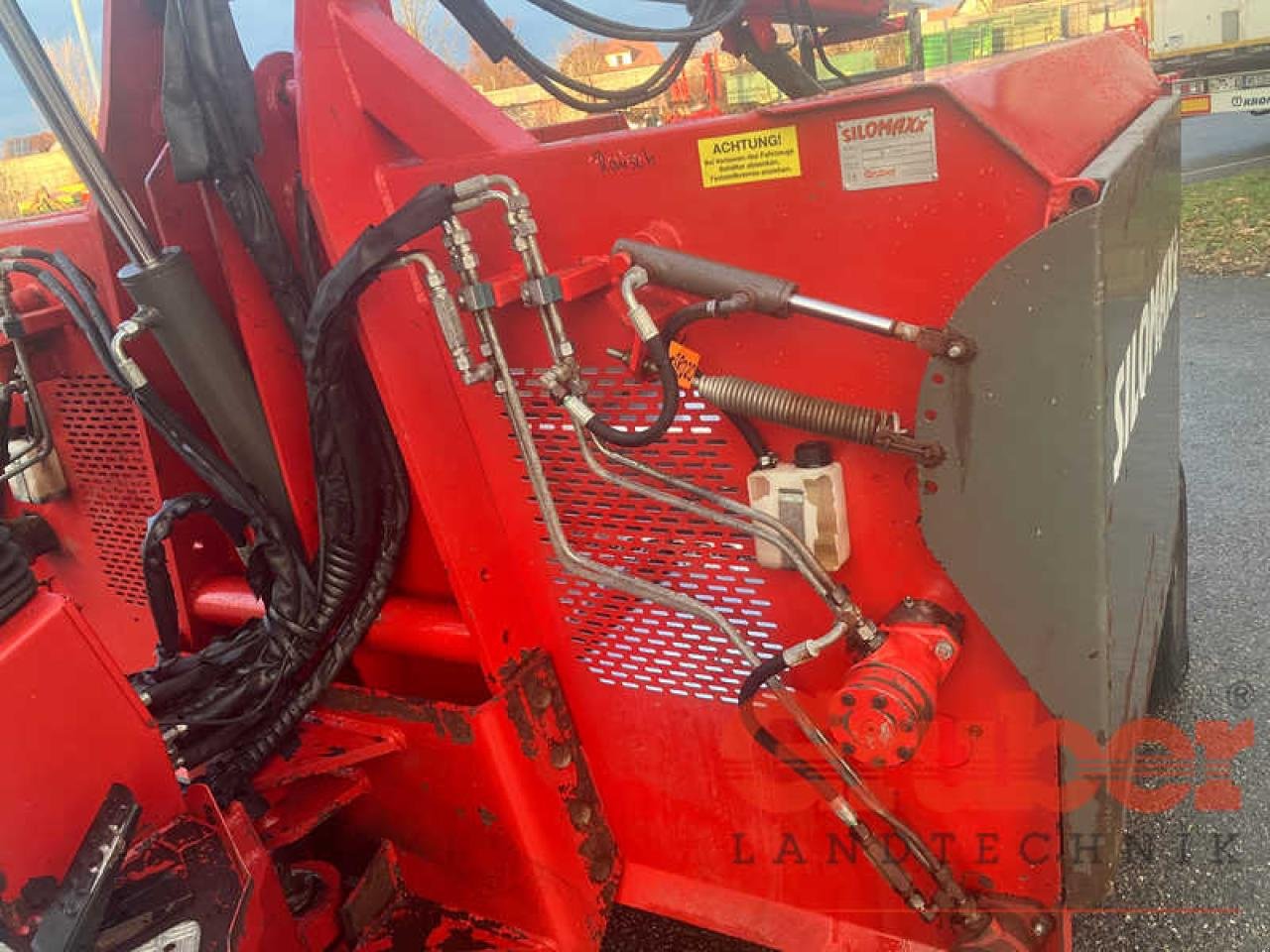 braucht, Teleskoparm, Knickpendellenkung, 4- Rad, 4,2 m², hydraulische Dosierseitendeckel am Verteiler, 1 Walze links und rechts, Fahrerschutzdach mit Scheinwerfer, Windschutzseitenteile links und rechts, Arm 2023 erneuert, Edelstahlboden, hydraulische Pumpe (2023 erneuert)