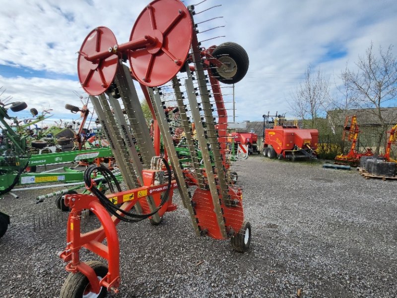 Ist das Heu trocken genug, kann es eingesammelt werden. Aufgrund seiner verteilten Anordnung auf der Wiese muss es vorher für die Sammelmaschinen angeordnet sein. Hierfür kommen bei der Grünlandtechnik & Futtererntetechnik die sogenannten "Schwader" zum Einsatz. Sie sehen so ähnlich aus wie die Zetter, haben aber eine andere Aufgabe: sie ordnen das Heu für die Aufnahme in Bahnen an