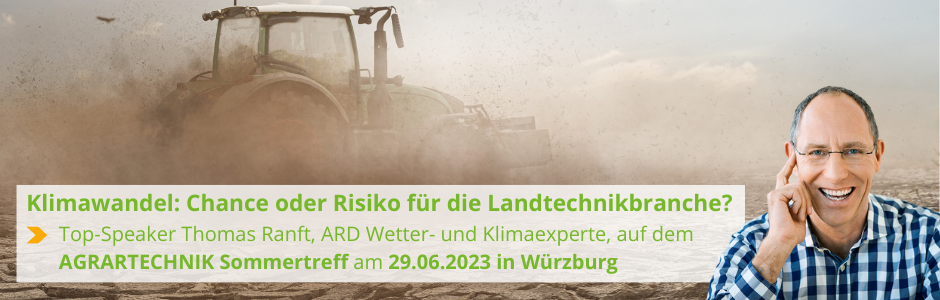 Der Klimawandel stellt die Landtechnikbranche vor neue Herausforderungen und bietet gleichzeitig Chancen für Innovation und Wachstum. In seinem spannenden Vortrag Klimawandel: Chance oder Risiko für die Landtechnikbranche? analysiert Top-Speaker Thomas Ranft, ARD Wetter- und Klimaexperte, die Auswirkungen des Klimawandels auf die Landtechnikbranche.