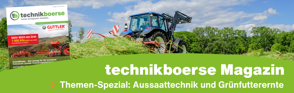 Am 27. Februar 2025 erscheint die neue Ausgabe des technikboerse-Magazins – diesmal mit einem speziellen Fokus auf Aussaatechnik und Grünfutterernte. Nutzen Sie die Möglichkeit, Ihre Maschineninserate, Image- und Stellenanzeigen in dieser reichweitenstarken Publikation zu platzieren!