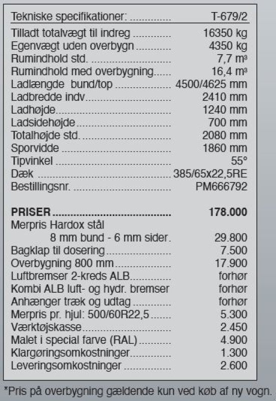 Den kan, ligeledes som ekstraudstyr, levers med meget kraftig 80 cm. overbygning med gummitætning ved bagklap.