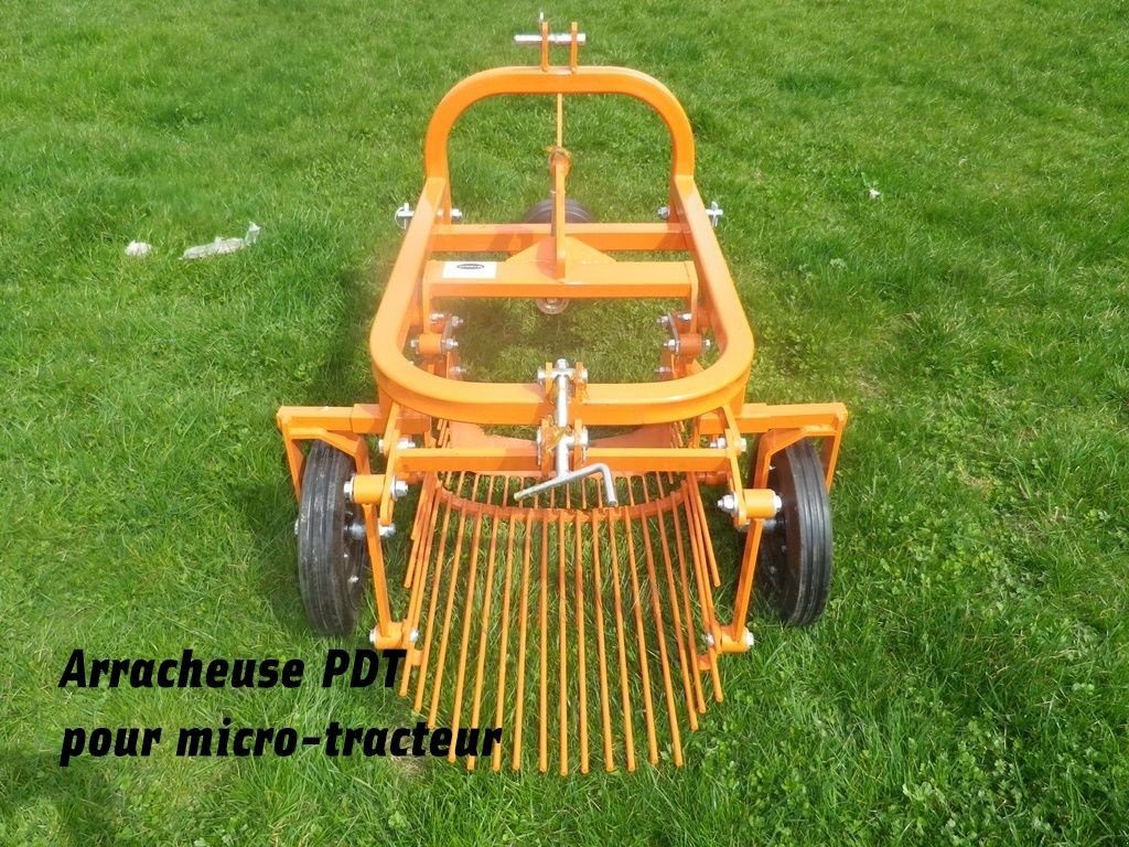 Cette arracheuse de pommes de terre s’adapte sur les micro-tracteurs munis d’un attelage 3 points. Munie d’un soc excavateur et de 2 grilles à oscillation transversale et alternée, dont le mouvement est assuré par un arbre à excentriques, équilibré par un volant arrière.