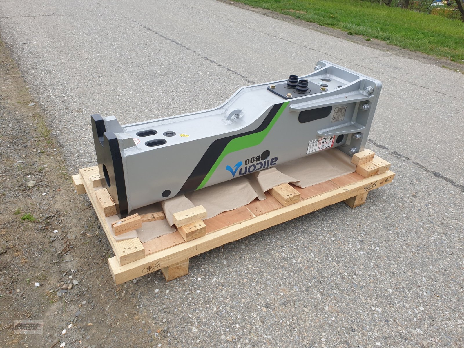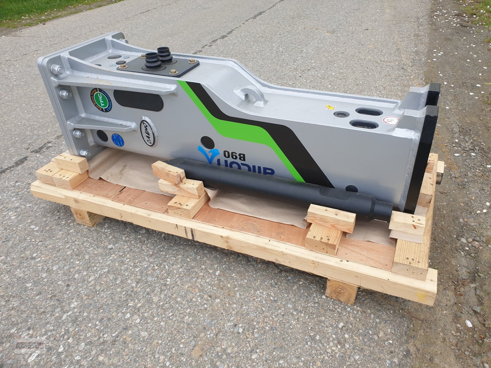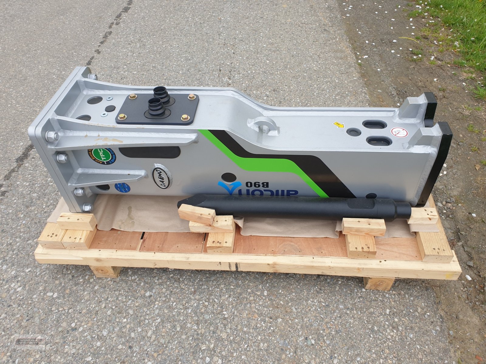 Hydraulikhämmer Alicon B90, Trägergerät 7t - 12t, Arbeitsdruck 100-140 bar, Ölfluss 50-100 l/min, ohne Anbauplatte und ohne Schläuche und Kupplungen