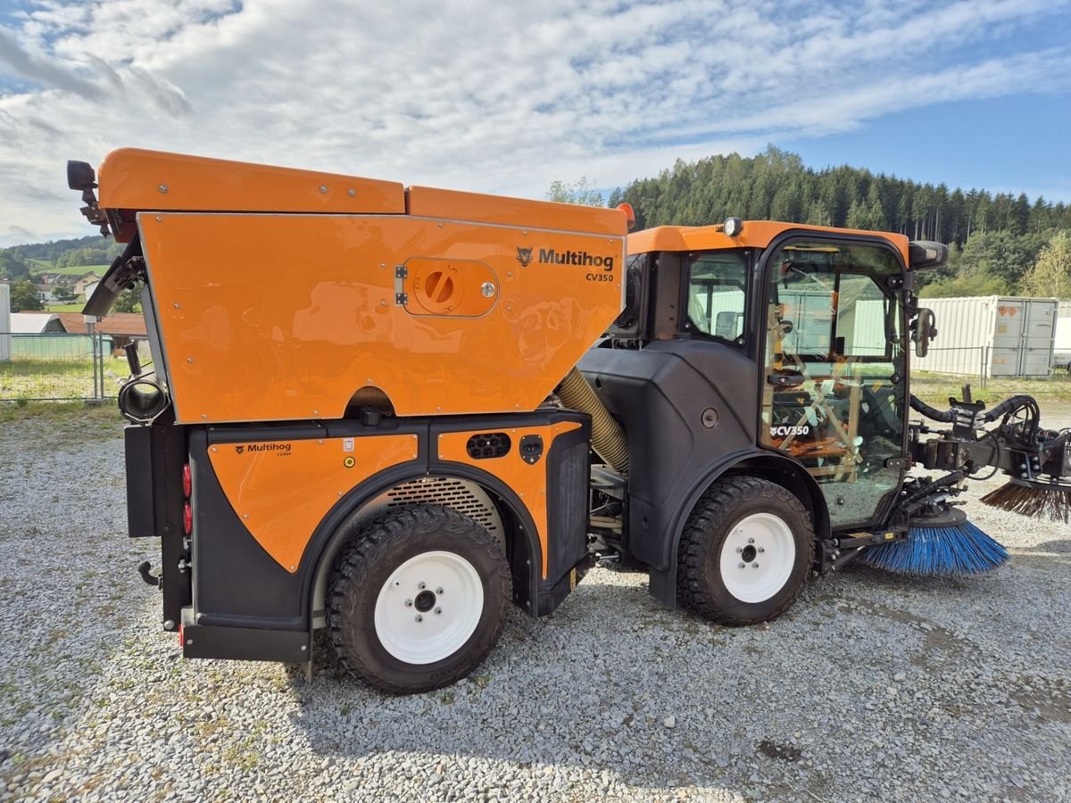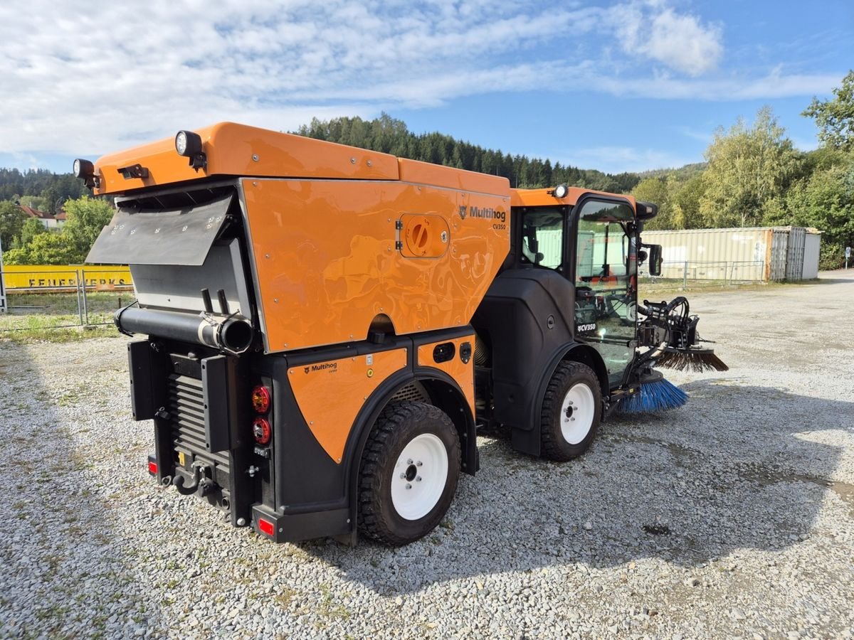 Multihog CV 350 Kehrmaschine, wie Neu nur 9 Betriebsstunden, Bj. 09/2021, Tageszulassung: 10/2023, Vollausstattung, Handabsaugung, Hochdruckreiniger, beheizte Frontscheibe, beheizte Außenspiegel, Komfortsitz mit Luftfederung und Sitzheizung, 3-Kamera-System, LED Arbeitsbeleuchtung vorne und hinten, LED Blitzer vorne und hinten, Rundumleuchte, verstärkte Differenzialsperre (für Winterdienst), permanenter hydrostatischer 4-Rad Antrieb, Bereifung Kuhmo MT51 M&S 245/70 R16 (ca. 130 cm Breite), Kotflügel, Joystick-Steuerung (auch für dritten Besen), normaler NEUPREIS in dieser Ausstattung: rund 143.000 Euro. OPTIONAL gegen Aufpreis dritter Besen (für schweres Unkrautkehren), hydraulisch verstellbar, Kehrrichtung umkehrbar und Vario-Schneeschild 150 cm